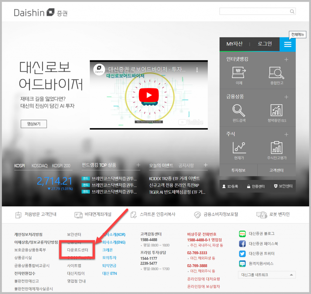 대신증권 홈페이지 주소: https://www.daishin.com/