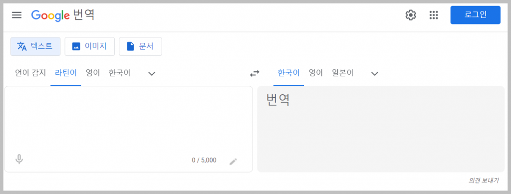 구글 번역기는 정말로 많은 언어들에 대한 번역이 가능합니다. 죽은 언어이기는 하지만 라틴어도 번역이 가능하지요. 위의 링크를 통해서 들어가시면 제가 미리 설정을 했기 때문에 바로 이용할 수 있습니다.