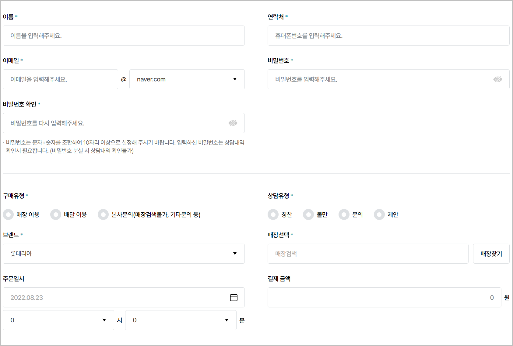 위 링크로 들어가시면 고객의 소리를 이용하실 수 있습니다.