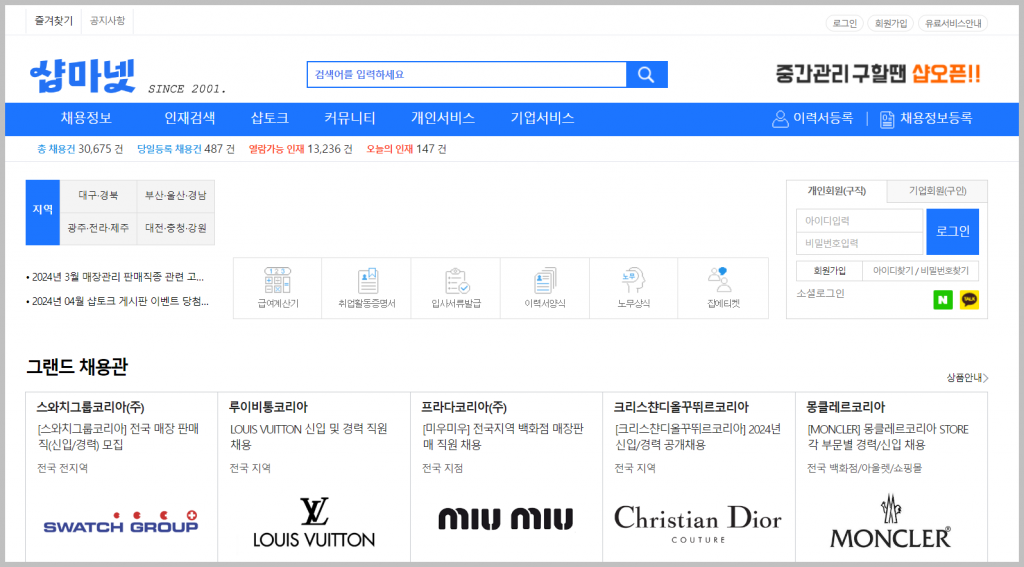 구인구직을 하는 방법은 여러 가지가 있을 수 있습니다. 사람인과 같은 채용사이트가 있을 수도 있고, 알바천국과 같은 사이트도 있습니다. 하지만 전문적인 일을 하는 사람의 경우에는 별도의 전문 사이트가 있습니다. 매장관리 판매직은 샵마넷이 가장 많은 사람들이 이용하는 사이트입니다.