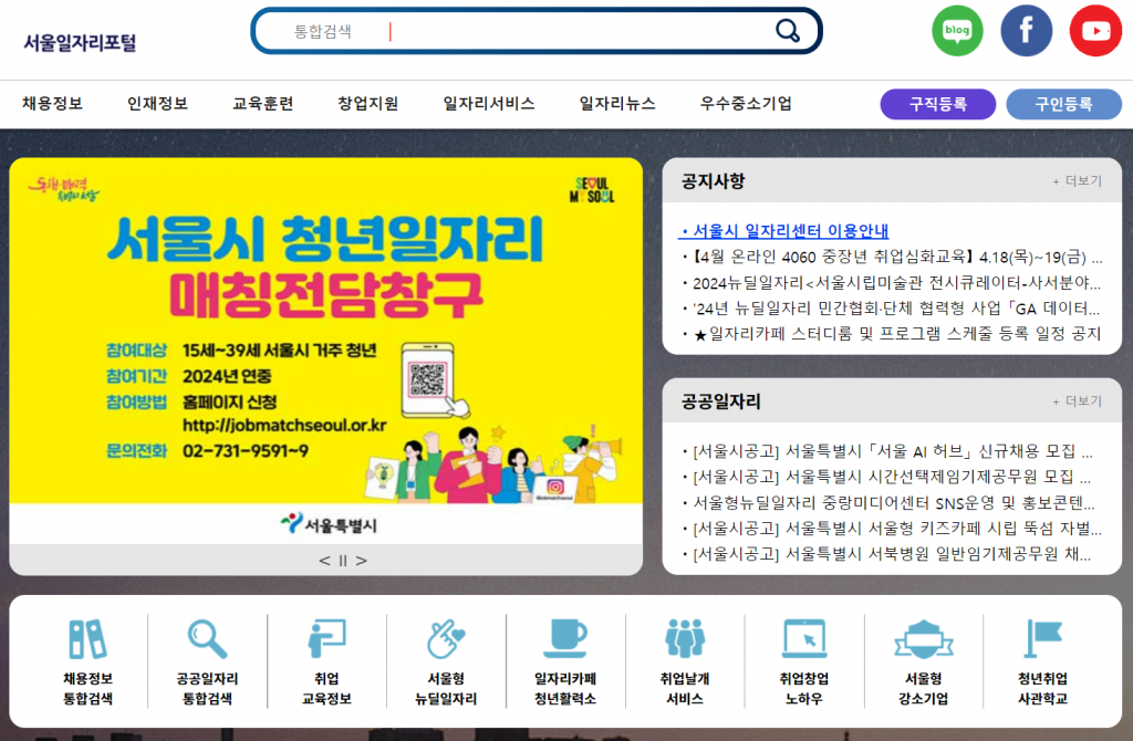 취업난이 계속되면서 정부와 지자체에서는 각자 여러가지 서비스를 도입했습니다. 그중 서울 일자리포털은 서울시에서 운영하는 구인구직 웹사이트입니다. 전국 단위 서비스인 워크넷과 달리, 서울 지역에 특화된 구인구직 서비스를 제공합니다.