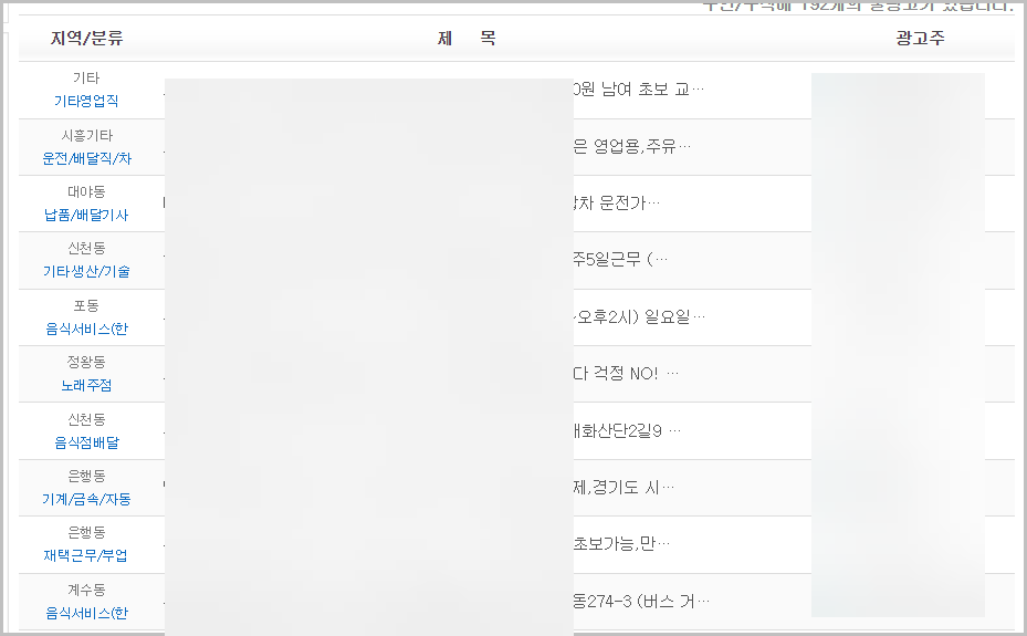 예를들어 구인구직으로 들어가시면 위와 같은 화면을 볼 수 있습니다. 여러가지 정보들이 계속해서 나와 있습니다. 아쉬운것은 분명히 있습니다. 검색이 불가능하다는 것입니다. 그래서 하나하나 찾아볼 수밖에 없는 한계가 분명히 존재합니다. 이러한 기능을 만드는것은 그리 어렵지 않으니 검색이 가능하면 좋을것 같네요.