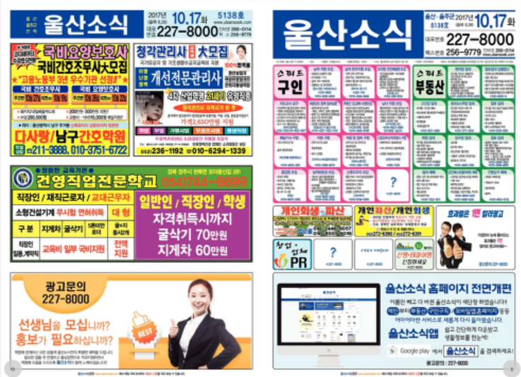 여튼 대체제는 많이 있습니다. 울산소식 구인구직과 관련된 부분은 대도시이기 때문에 알바천국과 같은 사이트에서 충분히 공유 받을 수 있으리라 생각합니다. 부동산과 관련된 부분도 네이버 부동산에서 많은 매물을 찾아볼수 있으이라 생각합니다. 하지만 줄광고와 같은 맛은 더이상 느낄수 없는것은 조금 아쉬울 따름이네요.