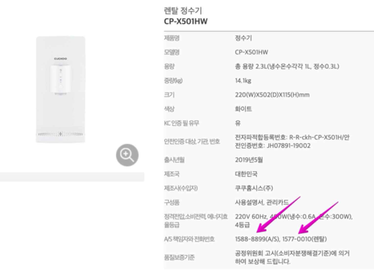 쿠쿠정수기 고객센터 전화번호