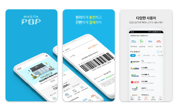 모바일팝 앱을 통해 등록, 잔액조회, 결제 등을 간편하게 이용할 수 있습니다. 모바일팝 앱을 설치하고 가입한 후에는 잔액 조회와 함께 다양한 기능을 활용할 수 있으므로, 사용자에게는 필수적인 어플리케이션이라고 할 수 있습니다. ( 어플에 저장이 되어 있으면 실물이 없어도이용이 가능합니다.)