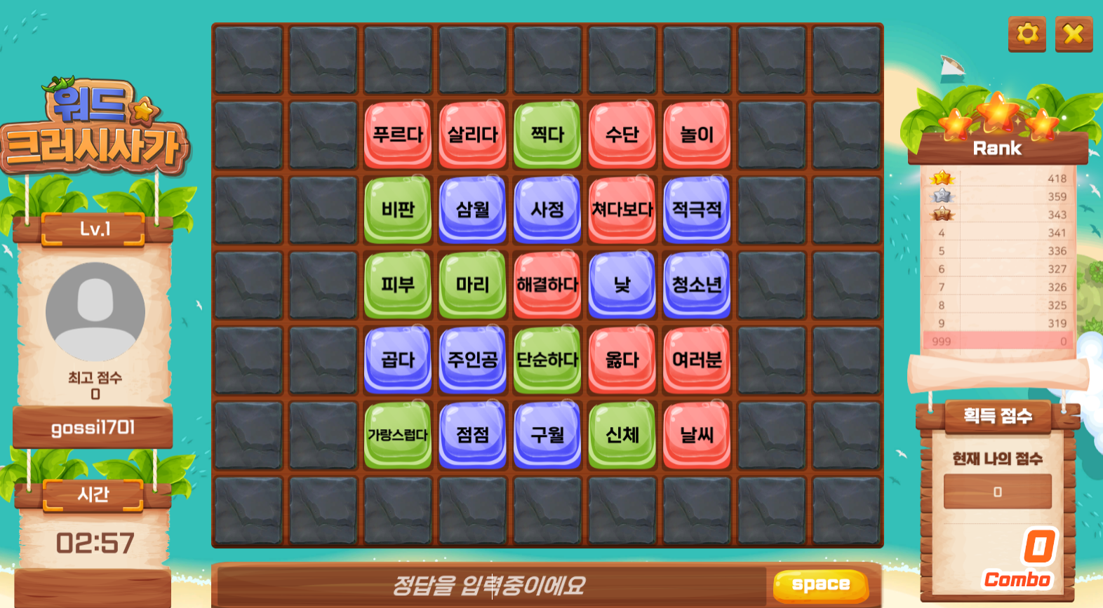 위 링크로 들어가면 즐겁게 타이핑을 할수 있는 Game 항목으로 들어갈 수 있습니다. 과거에는 여러가지 게임이 존재하였지만, 요즘에는 워드크러시 사가와 킹덤 디펜스라는 것만 남아 있습니다.