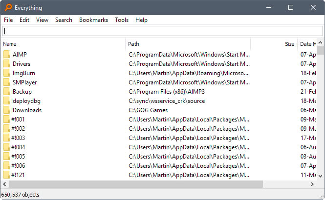 이 에브리띵은 설치 후 파일 색인 작업을 시작하여, 어디에 어떤 파일이 있는지 미리 기록합니다. 위치 변동이 감지되면 새로 기록하는 방식으로 작동하여, 폴더 위치 검색 시 미리 기억해둔 위치를 바로 보여줍니다.