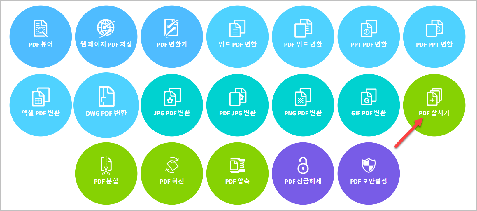 - 홈페이지에서 '합치기'를 클릭합니다.