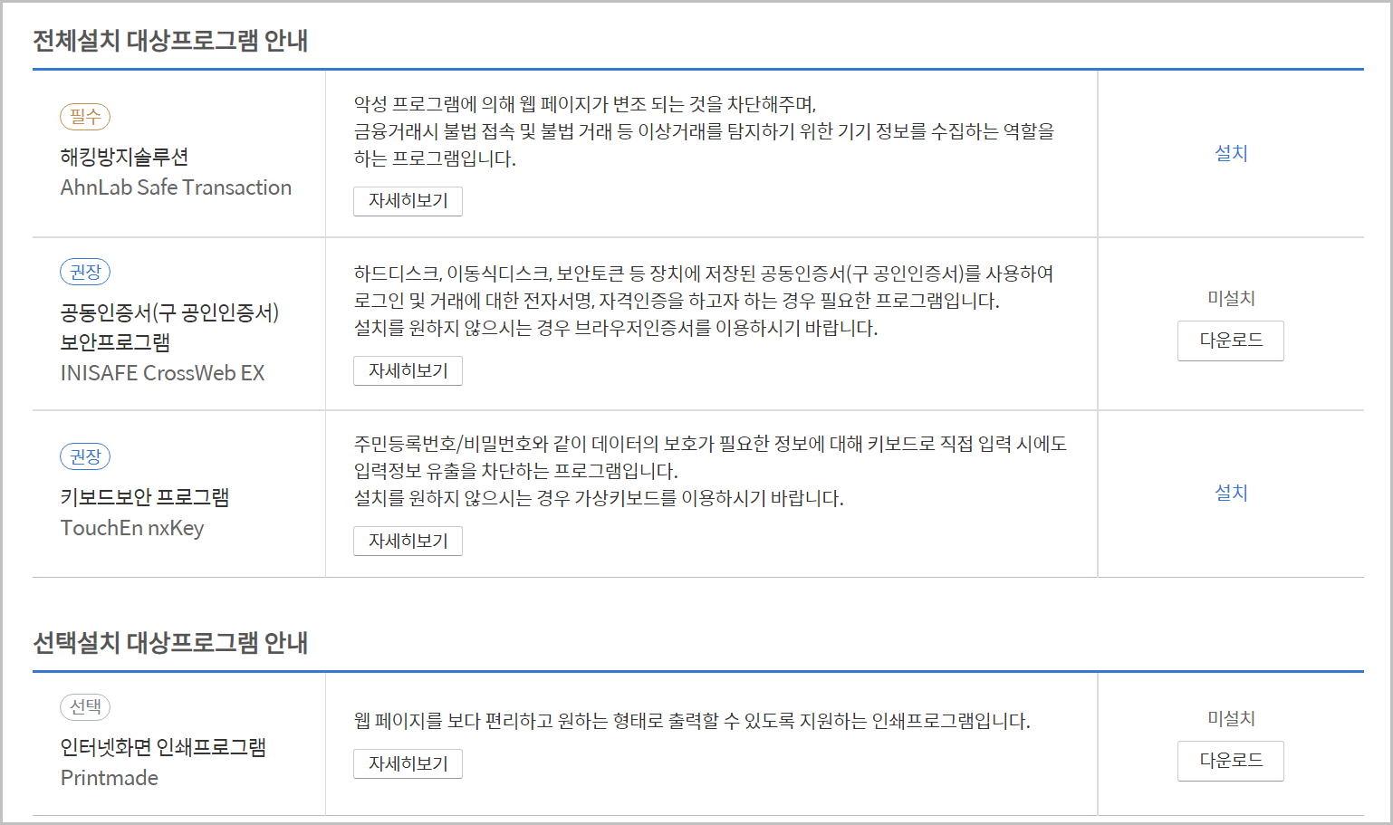 신한은행과 같은 경우에는 기본적으로 3개의 소프트웨어가 필요하고, 추가적으로 1개가 더 필요합니다. 이정도는 설치가 되어야지 제대로 뱅킹이 되게 됩니다. 이 중에서 가장 까다로운것으 insafe crosswebex 라는 프로그램입니다. 이프로그램은 위변조가 되었다고 판단하면 crosswebex 재설치를 요구하게 됩니다.